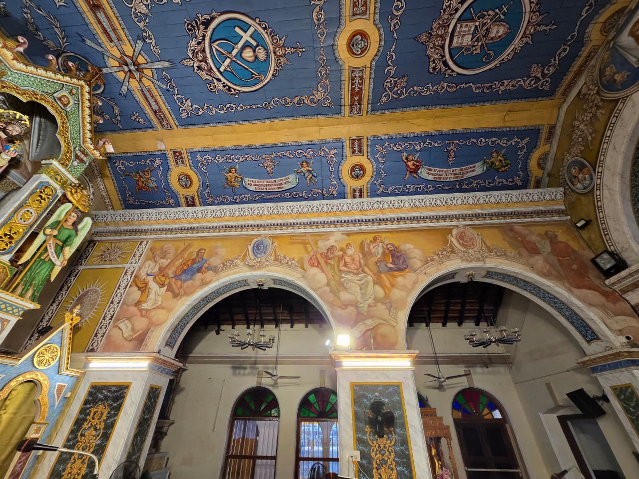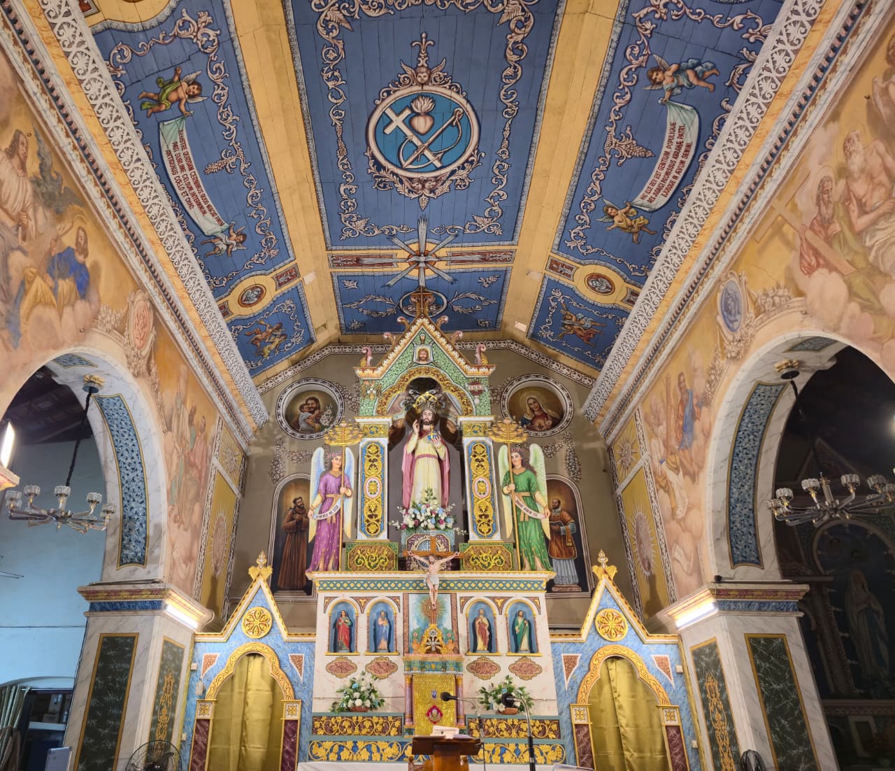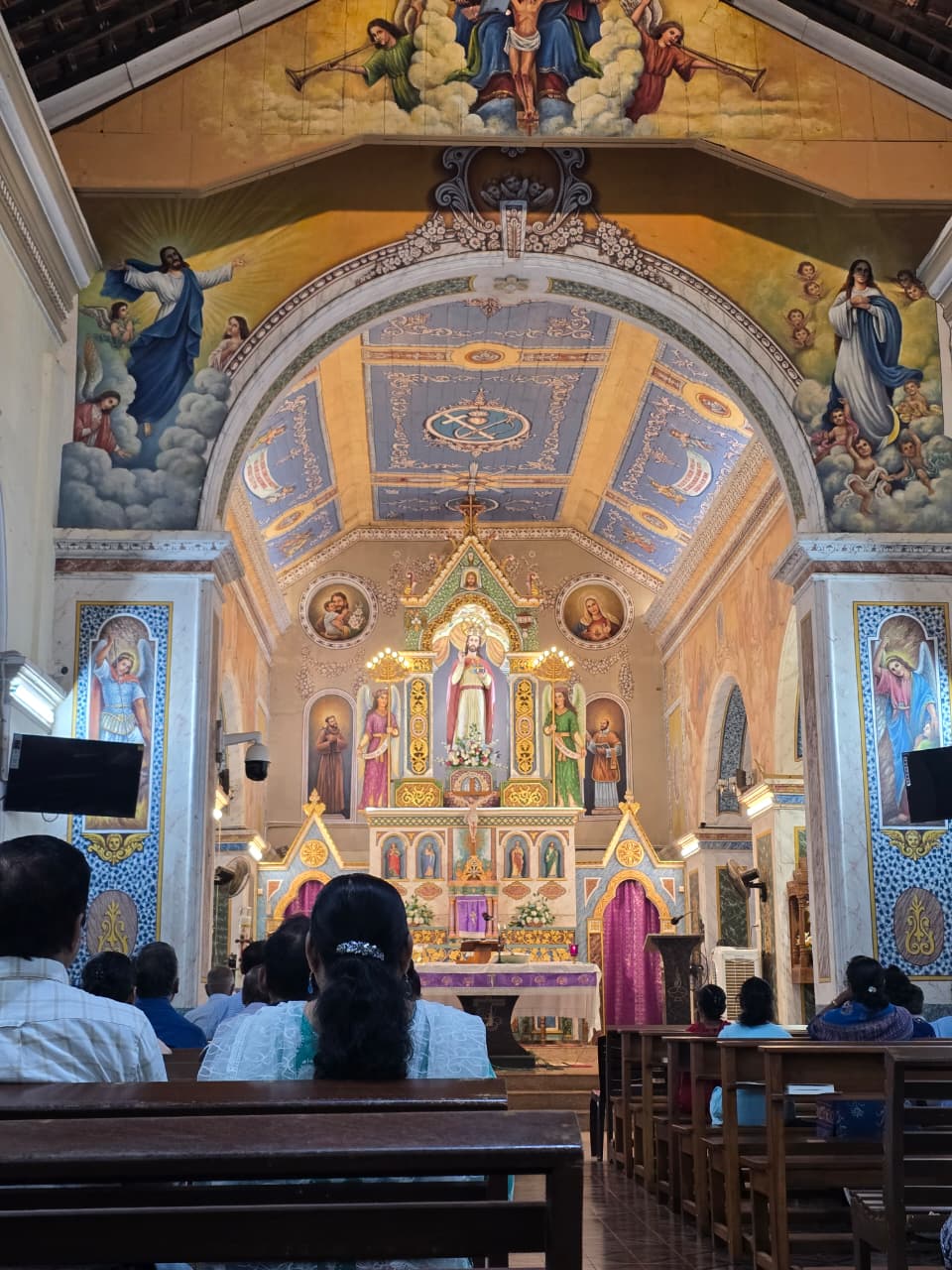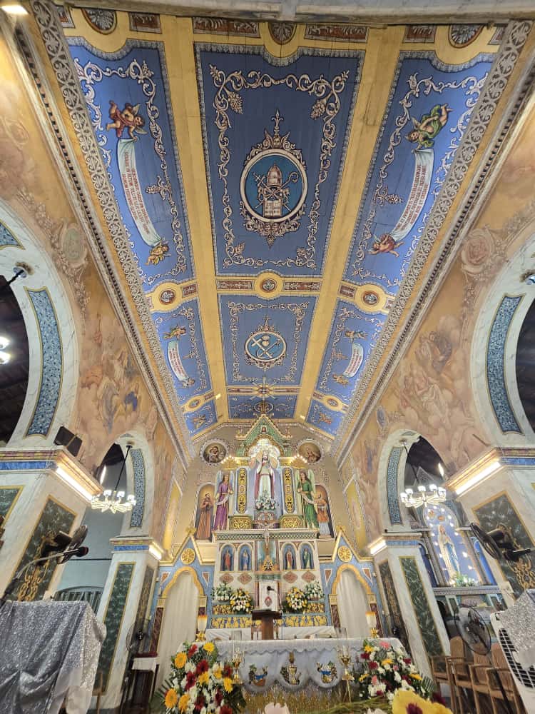 The great paintings in the Sanctuary display the same mastery of perspective, colour, and sacred imagery. His work was complemented by paintings from Francisco De Gama.