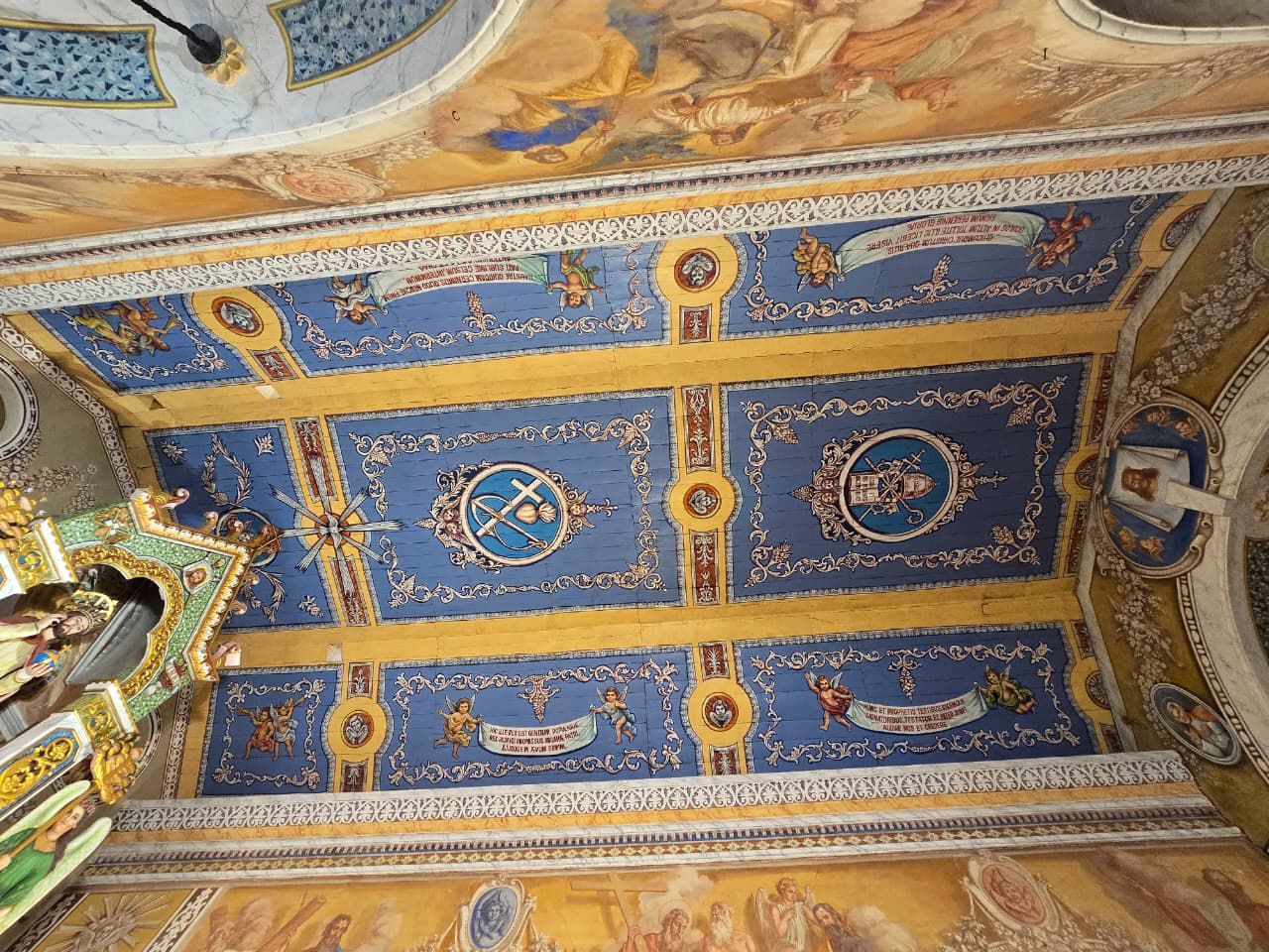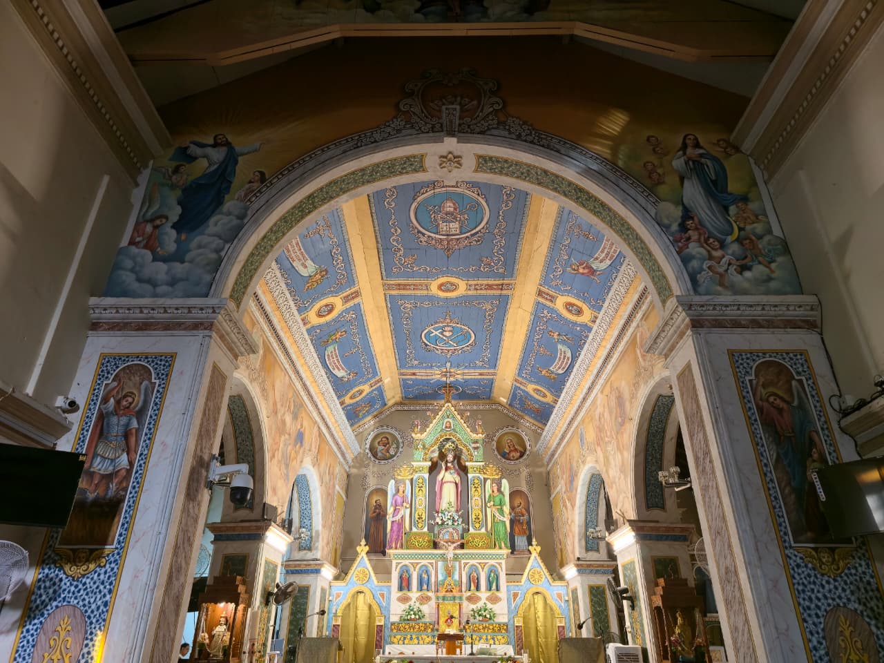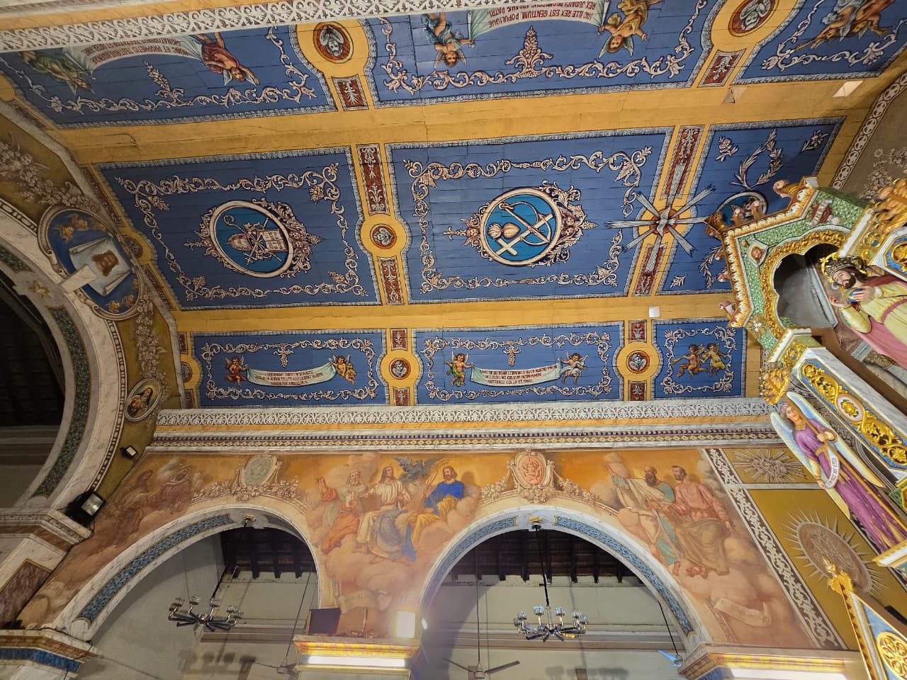 The great paintings in the Sanctuary display the same mastery of perspective, colour, and sacred imagery. His work was complemented by paintings from Francisco De Gama.